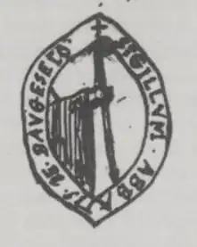 In the 12th and 13th centuries, the abbots of Beaugerais all used the same shuttle seal, depicting an arm emerging from a sleeve, holding a crozier and bearing the inscription "+ SIGILLVM.ABATTIS.DE.BEAVGESEIO". (seal of Abbé de Beaugerais).[25]