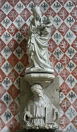 The Beautiful Madonna from Toruń - a Gothic sculpture depicting Mary and Infant Jesus from Toruń. One of the most valuable, in terms of artistic value, images of the Madonna and Child made at the turn of the 14th and 15th century. In terms of typology and stylistics, this work is pars pro toto of a beautiful Madonna, an iconographic type shaped before 1400. The sculpted images of Beautiful Madonnas represent the Beautiful style, a stylistic trend shaped during the Gothic period in Central Europe.