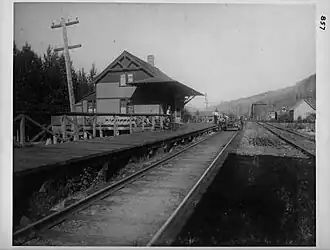 In 1885, Thomas Thompkins built an engine house.[10] In 1917, a four-stall engine house replaced the previous two-stall one. That year, an oil storage tank was built for oil-fired locomotives operating in the mountains.[7] By 1919, CP had its own boarding house.[11] In 1921, CP installed a mechanized system for filling the coal hopper.[7]