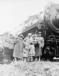 In 1939, King George VI and Queen Elizabeth rode in the lead locomotive cab of the westbound royal train from Beavermouth to Stoney Creek.[12] The following year, Madeleine Carroll rode in the cab of an eastbound passenger train from Beavermouth to Leanchoil,[13] a choice that excludes the more spectacular scenery.[14]
