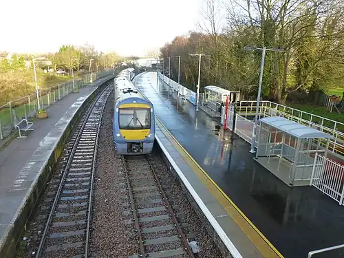 There is a footbridge with quite steep ramps connecting the platforms and passenger information screens on both platforms.[4]