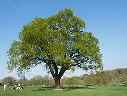 Beckenham Place Park contains ancient woodland as well as other habitats.[4] Notable trees include oak, wild service tree, sweet chestnut and an ancient Turkey oak tree (reputedly the second oldest in Britain), that survived an arson attack in the 1990s but succumbed to wind, old age and vandalism in 2002. There is also an old mulberry tree.[2]