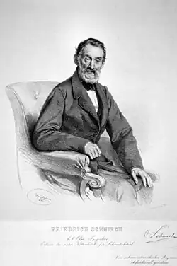 Bedřich Schnirch, or Friedrich Franz Schnirch (7 June 1791, Pátek – 25 November 1868, Vienna) was a Czech engineer, builder, Imperial Councilor, and Chief Inspector for the State Railways; primarily known for designing chain bridges. His nephew, Josef Emanuel Schnirch, was also a well known builder; and his grand-nephew was the sculptor, Bohuslav Schnirch.