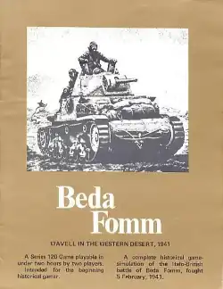 Beda Fomm, subtitled "Wavell in the Western Desert, 1941", is a board wargame published by Game Designer's Workshop (GDW) in 1979 that simulates the Battle of Beda Fomm during World War II. The game was part of GDW's "120 System", games that contained 120 counters, and supposedly could be played in 120 minutes.