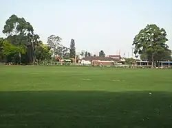 By 1820 a large part of the area had been subsumed by Joseph Underwood's large 'Ashfield Park Estate'. This property remained largely intact for more than 40 years, until it was subdivided into large blocks after the death of Elizabeth Underwood in 1858. By this time its proximity to the railway made it a desirable area (the station was originally called Fivedock).[9] One of these subdivisions was the 'Highbury Estate', on part of which Anthony Hordern, son of the founder of the great retail firm, Anthony Hordern & Sons, eventually built his house 'Shubra Hall', just beyond the west border of Ashfield. It later became part of the Presbyterian Ladies' College, the current boundaries of which give an idea of the extent of the Hordern property.[8] The College, including Shubra Hall, the main school building and the Meta Street entrance gates, is now listed on the Register of the National Estate.[10]