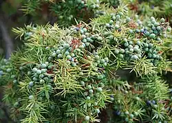 On the west flank of Newtimber Hill (area thirteen), above and below the Saddlescombe Road, are disused braided trackways, that are known locally as the ‘Devil's Stairs’. In this area lives a population of ancient juniper, our most special and rarest native bushy species. Some of the bushes may be as old as four hundred years, despite being only ten metres (thirty foot) or so high. The bushes' ancestors are likely some of the first woody species re-colonizing postglacial Britain, as it is a classic species of the cold tundra grasslands. Unfortunately, the Newtimber junipers are the only native ones on the Brighton Downs, despite Wolley-Dod in 1937 recording it as being abundant to the west of Brighton and present if rare to the east.[11] The National Trust and the Sussex Wildlife Trust are now bravely restoring the juniper's old Down pasture habitat and it is being planted on the A27 bypass at Stanmer and Devil's Dyke.[9]