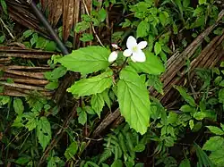 Begonia decandra, the native begonia or corazón de poeta, is a species of flowering plant in the family Begoniaceae, found only in Puerto Rico.[1][2] An understory herb, its veins exude red sap when crushed.[3] The plant prefers low light, with excessive light exposure sometimes leading to death.[4] The white flowers most commonly bloom from April to October.[4]