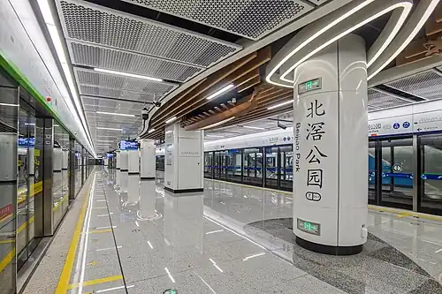 Beijiao Park station (Chinese: 北滘公园站) is an interchange station between Line 3 of the Foshan Metro and Line 7 of the Guangzhou Metro in Foshan's Shunde District.[1] It opened with Guangzhou Metro Line 7 on 1 May 2022,[2] with Foshan Metro Line 3 opening on 28 December 2022.[3]