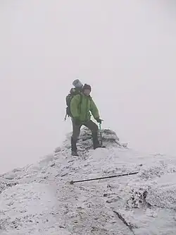 A common approach is from Inverarnan, up a steep eroded path beside the dramatic waterfalls of the Ben Glas Burn then finding a vague route across fairly level but very boggy moorland before walking up the hill itself and finding a way around a series of craggy outcrops to the summit.[4]