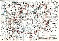 Beginning in the 1890s, Belarusian nationalism began to re-emerge. Francišak Bahuševič's 1891 call for Belarusians to identify with their nation was followed by the foundation of Nasha Niva in Vilnius in 1909.[18] The Belarusian Socialist Assembly, a left-wing political party calling for the independence of Belarus, was founded in 1902.[19] Attempts were also made to restore the Uniate Church, with Metropolitan Archbishop of the Ukrainian Greek Catholic Church Andrey Sheptytsky making a secret visit to Belarus at the behest of nationalist leaders Ivan Luckievič and Anton Luckievich, though nothing developed from it. Belarusian nationalism found particular growth in northern and central Belarus, where religious plurality was more common than the Catholic West and Orthodox East.[20] However, nationalists faced the problems of apathy and hostility from their countrymen: With the majority of the intelligentsia becoming convinced of Belarusian nationalism only in the 1890s, few Belarusians, the majority of whom were peasants, had any unique Belarusian national consciousness, and primarily identified with Poland or Russia, depending on their religion.[18] Nationalists were also opposed by the local intellectuals of peasant and clerical origins; those who were not rooted in the old Polonized aristocracy or gentry. These intellectuals are referred to as West-Rusists or Westrussianists.[14][21] One of the leading voices of the West-Rusists was historian and journalist Lukyan Solonevich, the father of anti-Soviet dissident and Tsarist philosopher Ivan Solonevich, as well as author Boris Solonevich.[21]
