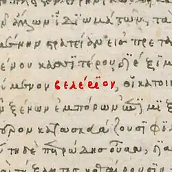 Belerion (Βελέριον) as it appears in Laurentianus Plut-70-1 (f.184v); a prototype manuscript of Diodorus' Bibliotheca Historica (c.1330).