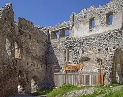 During the late 13th century Walter Vatz von Vaz allied himself with the Habsburgs against the Bishop of Chur and other local nobles. In 1287 a representative of the Bishop's, Walter Caramamma, was killed at Belfort. In 1332 another representative of the Bishop, Ulrich von Marmels, was executed at the castle, probably after being captured in a battle near Filisur. When the last of the male line, Donat von Vaz, died in 1337 Count Friedrich V von Toggenburg inherited the castle.[3] Under the Toggenburgs the area was administered and the castle was probably occupied by a vogt.[4]