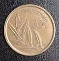 Initially, the currency was monolingual in French. From 1886, some Belgian coins also carried Dutch legends.[3] Some later coins featured inscriptions in both languages. When the two languages appeared on either side of the same face of a coin, two versions were still produced: one with Dutch to the left and French to the right, and one with the alternate arrangement. Banknotes became bilingual in 1887[3] and, from 1992, banknotes were introduced which were trilingual, with either French or Dutch on the obverse and German and the remaining language on the reverse.