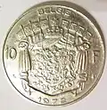 | 50 F | 22.75 | 7.00 | Nickel | Reeded | Value; year of issue; Lettering: België or Belgique |