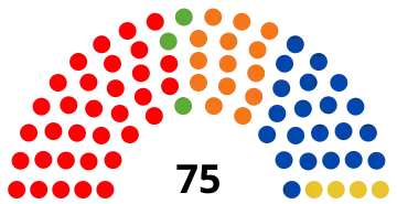 All 75 seats in the Walloon Parliament 38 seats needed for a majority | |||