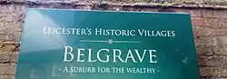 The Old Belgrave Village, containing the Belgrave Conservation Area,[1] including Belgrave Hall, Belgrave House, St Peter's Church and The Talbot Pub is to the west of Loughborough Road and to the east of the River Soar.