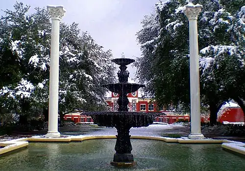 A major fire devastated the college on August 9, 1927, when lightning struck the school's only building. The columns that stand in the middle of campus are the approximate site of the fire. Today, Fitzhugh and Preston Halls are the remnants of the main building destroyed in the fire.