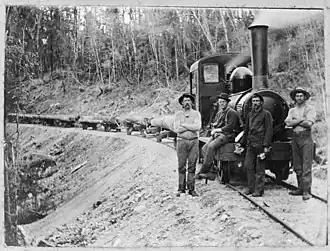 - ^ Timber workers by a Johnson steam locomotive, West Coast. Alexander Turnbull Library, Wellington, New Zealand. Reference Number: 1/2-058143-F.
