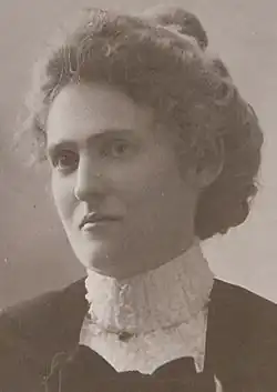Johnson was a charter member of the Photographers' Association of Missouri in 1894. At the group's statewide convention that year, Johnson's photographs won third place out of thirty-five entries, and missed first place by a narrow margin.[1] In 1899, she won a gold medal at the Association's state convention, and was elected the group's treasurer.[7][8] After a fire destroyed her studio that same year, she worked briefly in a photography studio established by local cigar maker, C.S. Robertshaw.[5] By 1901 she was again advertising under her own name. In 1902, she opened an elaborate new studio on the floor above the jewelry store of her brother-in-law, R. Manning Walker.[5]