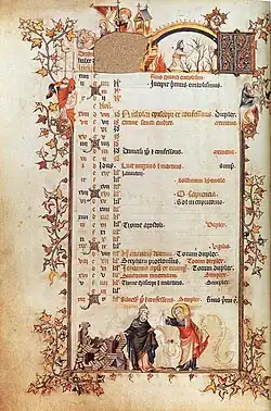 The Belleville Breviary (Paris, Bibliothèque Nationale, MS lat. 10484, 2 volumes) is an illuminated breviary. It was produced in Paris some time between 1323 and 1326 by the artist known as Jean Pucelle,[1] probably for Jeanne de Belleville, the wife of Olivier IV de Clisson. The breviary is divided into two volumes of 446 and 430 folios. Volume 1 contains the prayers used during the summer, while volume 2 contains those used during the winter.