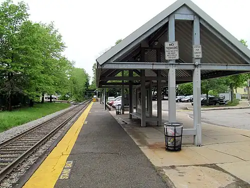Bellevue station is an MBTA Commuter Rail station in West Roxbury, Massachusetts. Located in the Bellevue neighborhood, it serves the Needham Line. The station has a mini-high platform for accessibility.