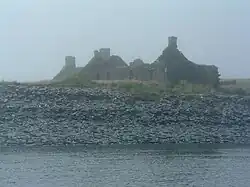 Living on a remote island in the 19th century came with significant hardships and the lives of the quarry workers have been described in unflattering terms by modern commentators, one describing them as in effect "slaves".[11] Today, the ruined buildings and abandoned machinery lie amidst the water filled quarries and are home only to wildlife.[12] There are very strong tidal streams in the area and this a potentially hazardous location for shipping. In 1936 the cargo vessel Helēna Faulbaums was wrecked on the island, with the loss of 15 lives.[13]