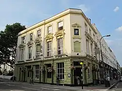 Belsize Park Gardens is a street in the Belsize Park area of Hampstead in London. Located in the London Borough of Camden, it is residential street featuring white stucco Victorian era buildings. It runs roughly southeastwards from Belsize Avenue in Belsize Village before terminating at a junction with Eton Avenue, England's Lane and Primrose Hill Road. The Grade II listed pub The Washington, dating from around 1865, is located at its eastern end.[1]