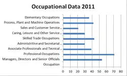 The Occupational data here from the 2011 Census shows us the change over time in all different manner of occupations. The most popular is professional occupations, with around 71 and just under 20% of the economically active residents, followed by managers, directors and senior officials, where there are around 54, which is just under 15% of the economically active population. Of the 734 residents of Belton, there are 358 out of a possible 365 who are economically active between the ages of 16 and 74. This breaks down to 49% of the village being economically active and in employment. Around 15% of the village are retired and the remainder of the village fall under; sick/disabled, students, or look after home/family.[8]