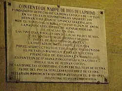 The plaque on the convent wall reads in part: This is the sepulchre of...Beltran de Cetina, father of...poet Gutierre de Cetina...