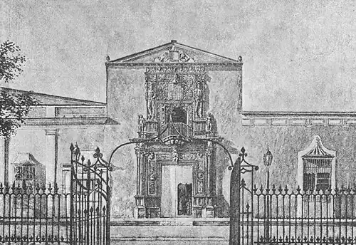 A 19th-century print of the Casa de Montejo, famous for its elaborate plateresque facade, home of Francisco de Montejo y León and Andrea del Castillo and later their descendants