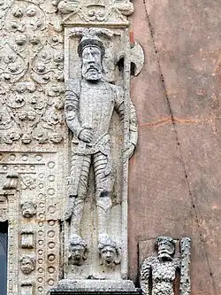 Relief of conquistador on facade of Casa de Montejo (built c. 1549), Mérida, Yucatán.