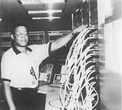 Technician Thadius Harrell installing a new main distribution frame at the Center in 1998
