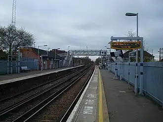 A level crossing beyond the western end of the platforms was closed before the westerly extension of the platforms around 1994, and the ticket office and platform shelters were rebuilt soon afterwards.