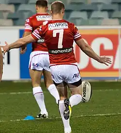 Ben Hornby (born 18 February 1980) is an Australian former professional rugby league footballer who played in the 2000s and 2010s. An Australia international and New South Wales State of Origin representative back, he captained the St George Illawarra Dragons of the National Rugby League from 2009 until his retirement in 2012. Hornby played his entire career with the Dragons, leading them to the 2010 NRL Premiership and becoming their most capped player since the formation of the joint venture club in 1999.[2]