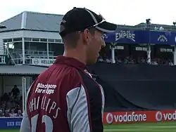 Phillips began his career at Kent, appearing for their Second XI regularly throughout the late 1990s. His made his first-class cricket debut for the club against Sussex early in the 1996 season, taking four wickets in the match.[2] He failed to impress during the following match against Leicestershire, taking no wickets,[3] and only made one more first-class appearance in the season.[4] Despite scoring his maiden first-class century in 1997 against Lancashire and twice taking 5 wickets in an innings, he dropped out of the first-class game at the end of the 1998 season after 27 appearances for Kent. Between 1999 and 2001 he turned out regularly for Kent Second XI and played a spell of three one-day matches for the first team.