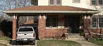 There is a small garage on the property that shares the same roofline and construction with the house.[2] The house and garage were listed together on the National Register of Historic Places in 1997.[1]