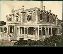 The initial allocation of section 270 was to G.F. Shipster,[3] who built a single-storeyed house on the section in 1844. With the subdivision of the section (i.e. bisection) by Glen Osmond Road, it passed to Robert Cock;[4] Shipster purchased section 300 in 1844 from J. Grainger, but died on 30 December 1844 at 'Kensington House' in what is now known as Kensington Park.[5]