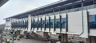 The elevated station stands on pillars above the centre of the Old Madras Road. Access is from a new footbridge connecting it with both sides of the road.[11]