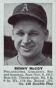 Benjamin Jenison McCoy (November 9, 1915 – November 9, 2011) was a second baseman in Major League Baseball who played for the Detroit Tigers (1938–1939) and Philadelphia Athletics (1940–1941). Listed at 5 ft 9 in (1.75 m). 170 lb., he batted left-handed and threw right-handed. He was born in Jenison, Michigan.