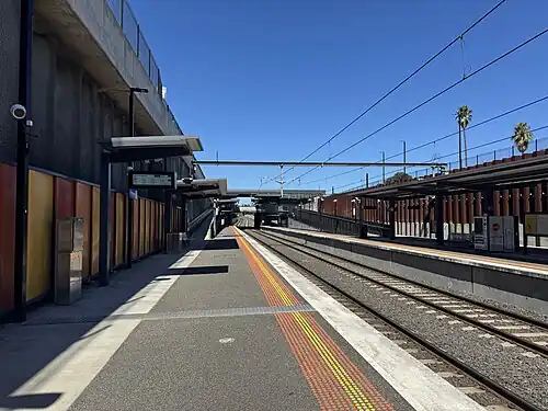 In May 2015, the Level Crossing Removal Authority announced a grade separation project to replace the Centre Road level crossing, immediately south of the station. This included rebuilding the station.[11] On 4 June 2016, the station closed for demolition. On 29 August of that year, the rebuilt station opened.[12]