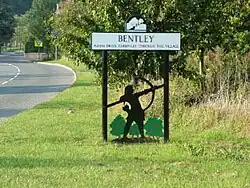 Bentley is a village and civil parish in the East Hampshire district of Hampshire, England. The parish has changed little over centuries and currently measures 2,299 acres (9.30 km2), the same size it measured in 1875[1]: 33 when the population was 731 The village is north of the A31 road between Farnham and Alton, about five miles (8 km) southwest of Farnham and six miles (10 km) northeast of Alton. The village is served by Bentley railway station, which is about one mile (1.6 km) to the south, in the parish of Binsted against Alice Holt Forest.