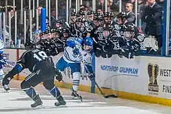The Bentley Falcons men's ice hockey team is a National Collegiate Athletic Association (NCAA) Division I college ice hockey program that represents Bentley University in Waltham, Massachusetts. The Falcons are members of Atlantic Hockey America, formed shortly after the 2023–24 season by the merger of their previous conference, the Atlantic Hockey Association, with College Hockey America (CHA).[2] Bentley had been an original member of the Association.[3] The Falcons play their home games at the Bentley Arena on the school's campus in Waltham, Massachusetts, having moved into the new, on-campus arena in February 2018. The Falcons are coached by Andy Jones.