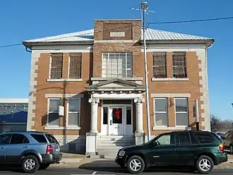 The Benton County Jail is a historic county jail building at 212 North Main Street in Bentonville, Arkansas, United States. It is a two-story brick Classical Revival building, designed by A. O. Clark and completed in 1911. It has pronounced limestone corner quoining, and its main entrance is flanked by Ionic columns and topped by a gabled pediment. The building is notable as a rare smaller-scale work by Clark.[2]