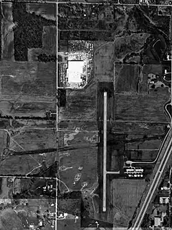 Benton Municipal Airport covers an area of 110 acres (45 ha) at an elevation of 444 feet (135 m) above mean sea level. It has one runway designated 18/36 with an asphalt surface measuring 4,002 by 75 feet (1,220 x 23 m).[1] The runway was expanded in 2003; it previously measured 2,720 by 60 feet (829 x 18 m).[4][5][6][7]