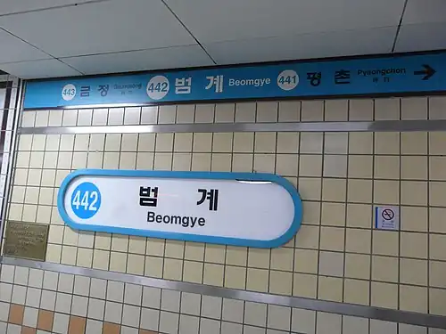 2. ^ "Beomgye". Seoul Metro. Archived from the original on 1 December 2017. Retrieved 22 November 2017.