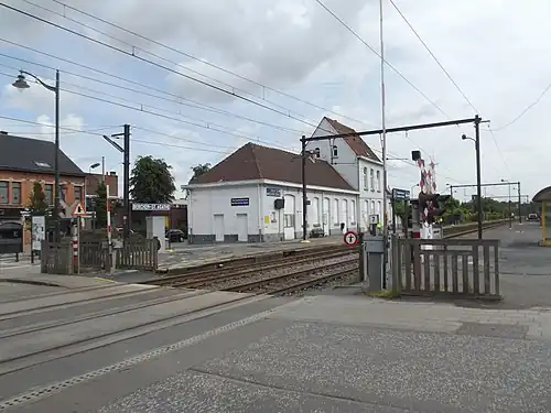 Berchem-Sainte-Agathe railway station (French: Gare de Berchem-Sainte-Agathe) or Sint-Agatha-Berchem railway station (Dutch: Station Sint-Agatha-Berchem)[a] is a railway station in the municipality of Berchem-Sainte-Agathe in Brussels, Belgium. The station, operated by the National Railway Company of Belgium (NMBS/SNCB), is located on line 50, between Jette and Groot-Bijgaarden railway stations.[1] It can be accessed from the Place de la Gare/Stationplein next to the Chaussée de Gand/Gentsesteenweg.