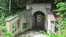 The architect Alois Degano was commissioned with the planning of the buildings. Construction started in mid-September 1936. The high groundwater level made it difficult to erect the foundations, which is why a floating foundation was installed on 620 concrete piles. Degano had opted for a main building with side wing, in addition, a garage building with staff housing was built northeast. The topping-out ceremony took place on 18 January 1937,[2] the completion of the aboveground building took place in July 1937. Between 1943 and 1945, the 500 m long air defense tunnel was built.