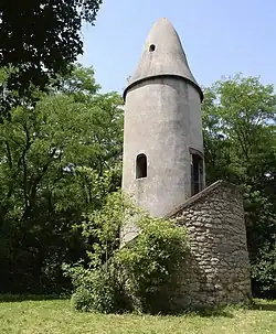 The Berger Warte is a guard tower first built in the 16th century on top of the hill with the same name "Berger Warte" (a part of the chain "Berger Rücken").[1] The tower is around twelve meters tall and built from red Main sandstone. It is located at the highest point of elevation (212m) of what today are the city limits of Frankfurt am Main, at the border of the two districts Seckbach and Bergen-Enkheim.[2]
