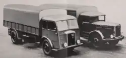 The forward control, low chassis GDLS 30 (15 tonnes GVW) was already developed as a primarily military vehicle in view of the upcoming war for hauling the 75 CA 1932 anti-aircraft gun on road.[33] The larger size compared to other mid-range haulers of the time responds to guidelines of a 1933 re-armament programme, requiring to transport under cover the entire gun crew (20 men) and an initial supply of ammunition. The speed of the GDLS 30, with a top limit of 56 kilometres per hour (35 mph), is in accordance with the piece to be towed, which can withstand an average of 40 kilometres per hour (25 mph) without damage. The wheelbase of this version is 3,600 millimetres (140 in), the width 2,590 millimetres (102 in), the length 7,160 millimetres (282 in), the kerb weight 7,650 kilograms (16,870 lb).[34] The engine is an MKU 110[35] with a maximum power of 90 metric horsepower (66 kW) in military configuration. Orders for the vehicle continued after the war broke out.[34] Some civil GDLS 30s were requisitioned and turned into refrigerated lorries.[36]