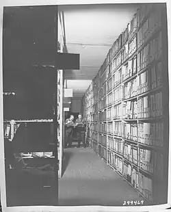 The Berlin Document Center (BDC) was created in Berlin, Germany, after the end of World War II. Its task was to centralize the collection of documents from the time of Nazism, which were needed for the preparation of the Nuremberg Trials against war criminals. The BDC was under American administration until 1994, when the German Federal Archives (Bundesarchiv) was allowed to take control of the BDC.[1] While the paper records remained in Germany, the entire collection was microfilmed and made available at the National Archives in Washington, DC, where researchers have much better access unhindered by restrictive German privacy laws now in effect in Berlin.
